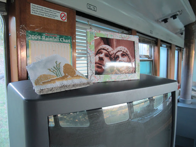 Alors que nous n'avions pas grand chose à manger, qu'il pleuvait et que nous venions d'allumer le poêle, nous nous sommes fait notre premier repas au wagon ...